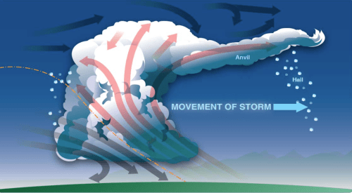 Beneath the storm cloud base, conditions can also be treacherous. Blinding rain and even hail can extend to the ground. IMC conditions are common.